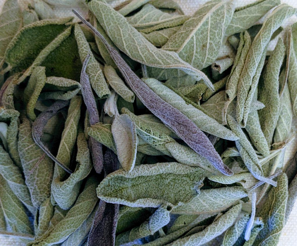 Eine Mischung aus drei Salbeisorten. Schmeckt klassisch. Zerkleinert auch in der Küche zu verwenden.